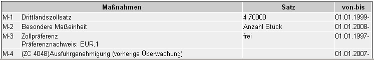 Bei der Anwendung der zutreffenden Abgabensätze ist nach dem Spezialitätsprinzig zu verfahren, d. h. besondere Zollsätze einer Codenummer gehen den allgemeinen Drittlandszollsätzen vor, wenn ihre Anwendungsvoraussetzungen vorliegen.