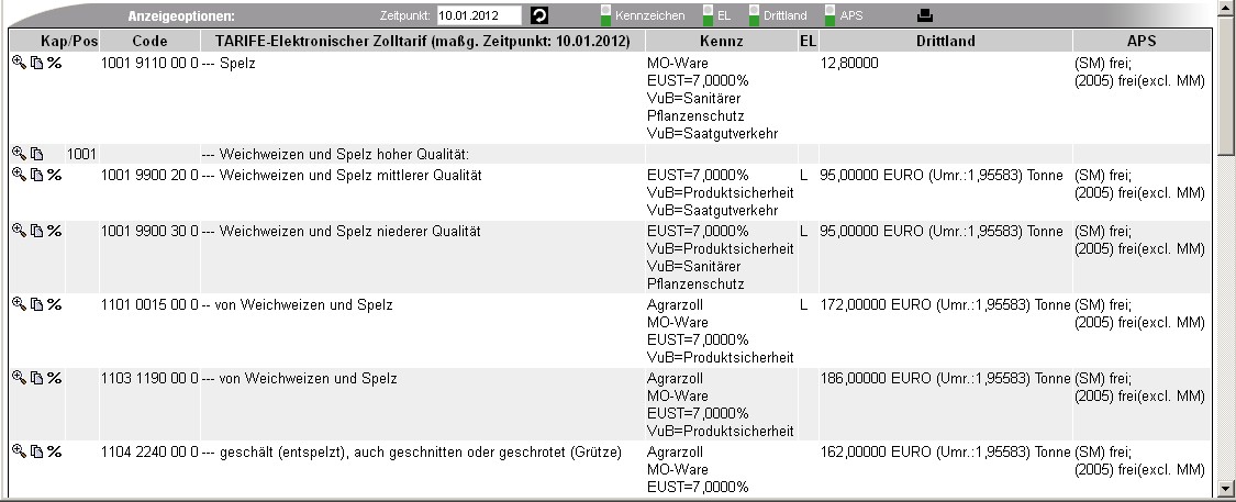 Hier wird die Nomenklatur auf verschiedenen Gliederungsebenen nach so genannten "Textzeichen" durchsucht.