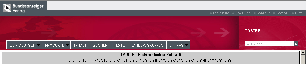 Die römischen Zahlen im grau unterlegten Teil der Kopfleiste stehen für die einzelnen Abschnitte der Nomenklatur; hier können Sie sich durch Anklicken unmittelbar den für Sie in Betracht kommenden Abschnitt anzeigen lassen.