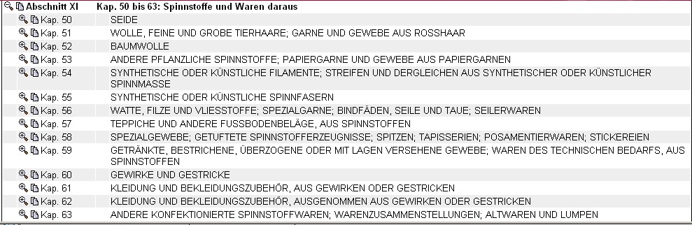 Zur Ermittlung der Position klicken Sie auf die Lupe neben Kapitel 61.