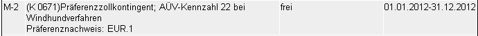 Kontingente (Zollkontingent / Lizenzkontingent) gelten für bestimmte Codenummern gegenüber bestimmten Ländern für einen bestimmten Zeitraum.